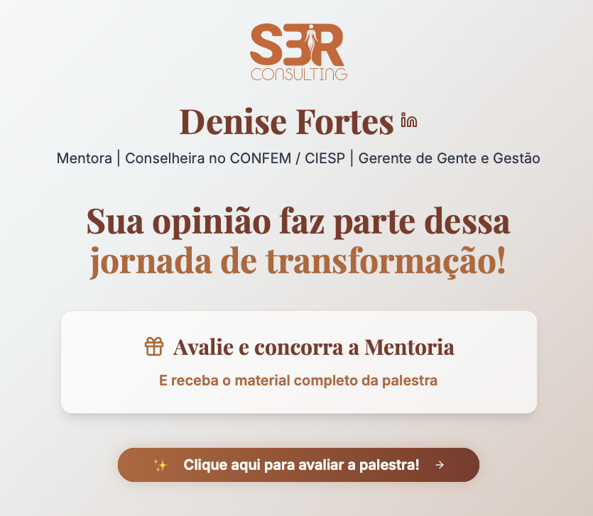 Pesquisa de satisfação pós-palestra: Ao final da palestra, os participantes acessam uma página para dar feedback de forma rápida e intuitiva.